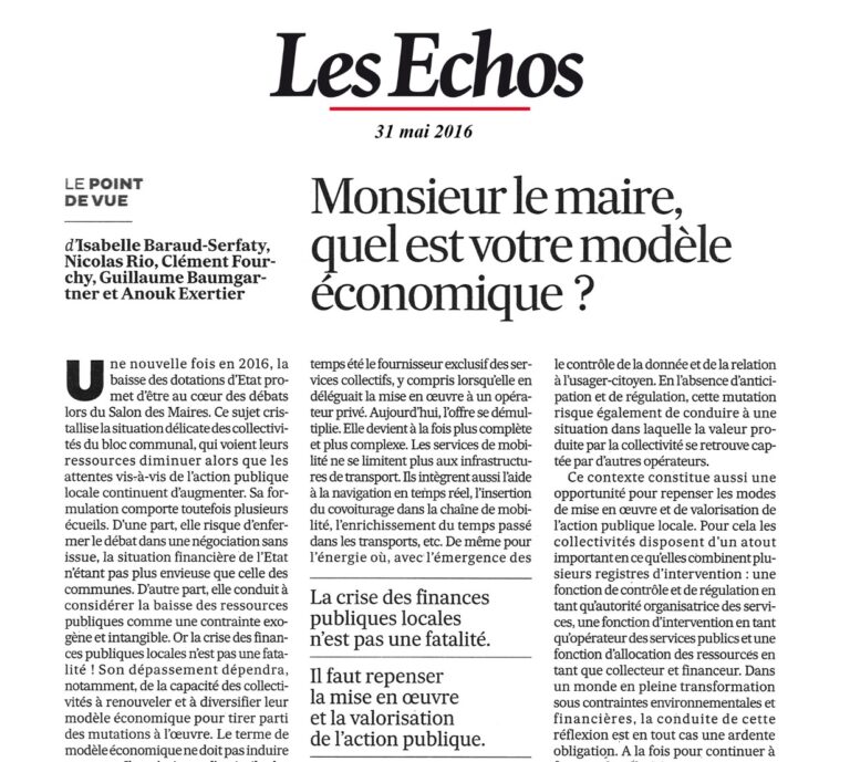 « Monsieur le maire, quel est votre modèle économique ? » nous demandions-nous, avec nos collègues de Partie Prenante et d’Espelia à l’occasion du Salon des Maires…