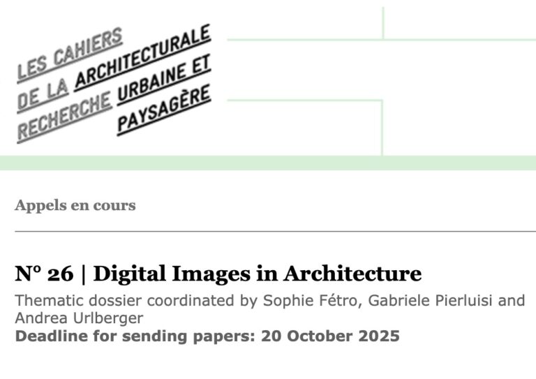 Call for papers : Digital Images in Architecture Thematic dossier coordinated by Sophie Fétro, Gabriele Pierluisi and Andrea Urlberger « While seemingly objective, the algorithms that generate and manage…
