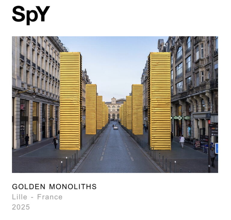 « À l’image des portes de ville du 17ème siècle qui accueillaient l’ouverture des carnavals et des processions, les Golden Monoliths de l’artiste espagnol SpY guident le public…