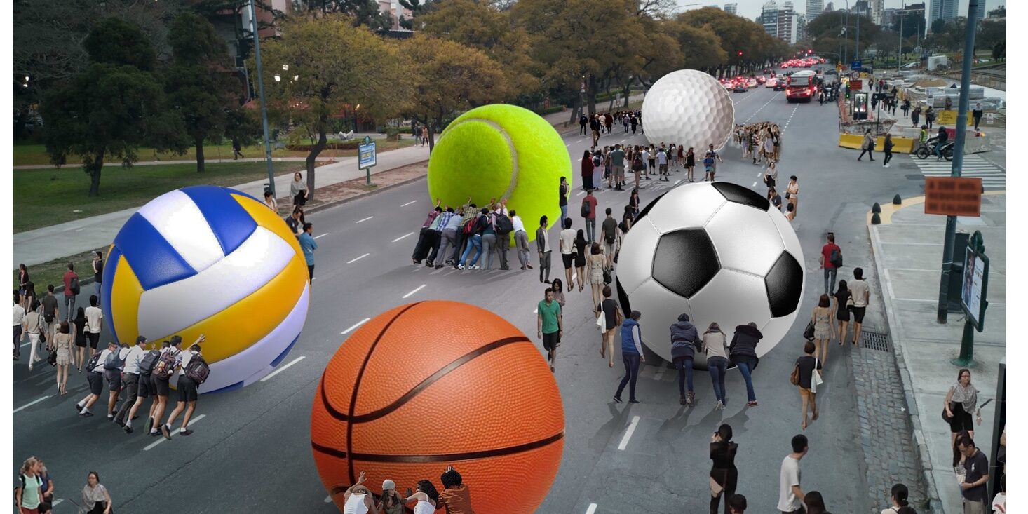 (ci-dessus, Ball Game, de Leandro Erlich)